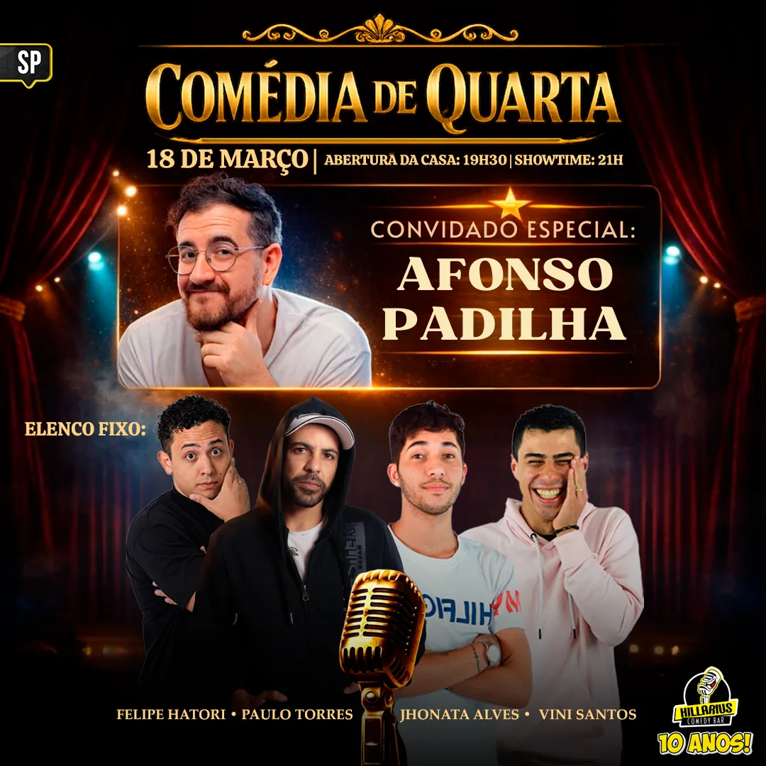 Humorista(s): Felipe Hatori, Paulo Torres, Jhonata Alves, Vini Santos convidam: Afonso Padilha